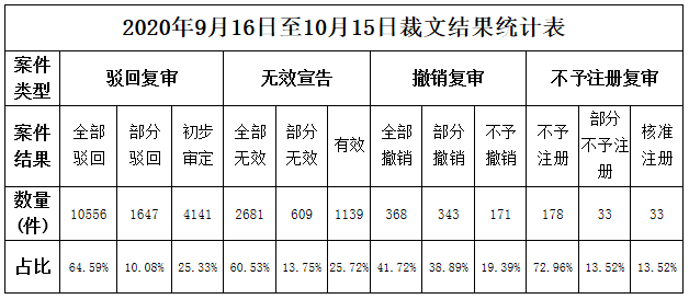 2020年9月16日至10月15日,行政訴訟共收到一審被訴案件1255件,同比增長18.06%,環比減少18.66%;收到二審被訴案件561件,同比增長15.91%,環比減少1.58%;收到再審被訴案件60件,同比增長566.67%,環比減少57.45%。