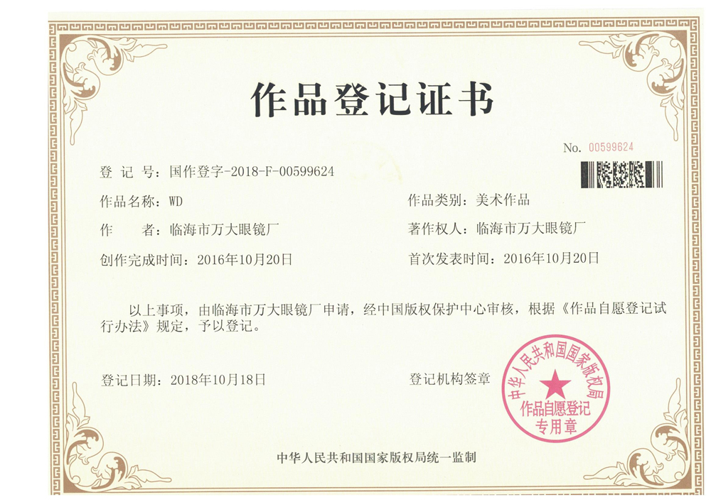 臨海市萬(wàn)大眼鏡廠——WD——版權(quán)證書
